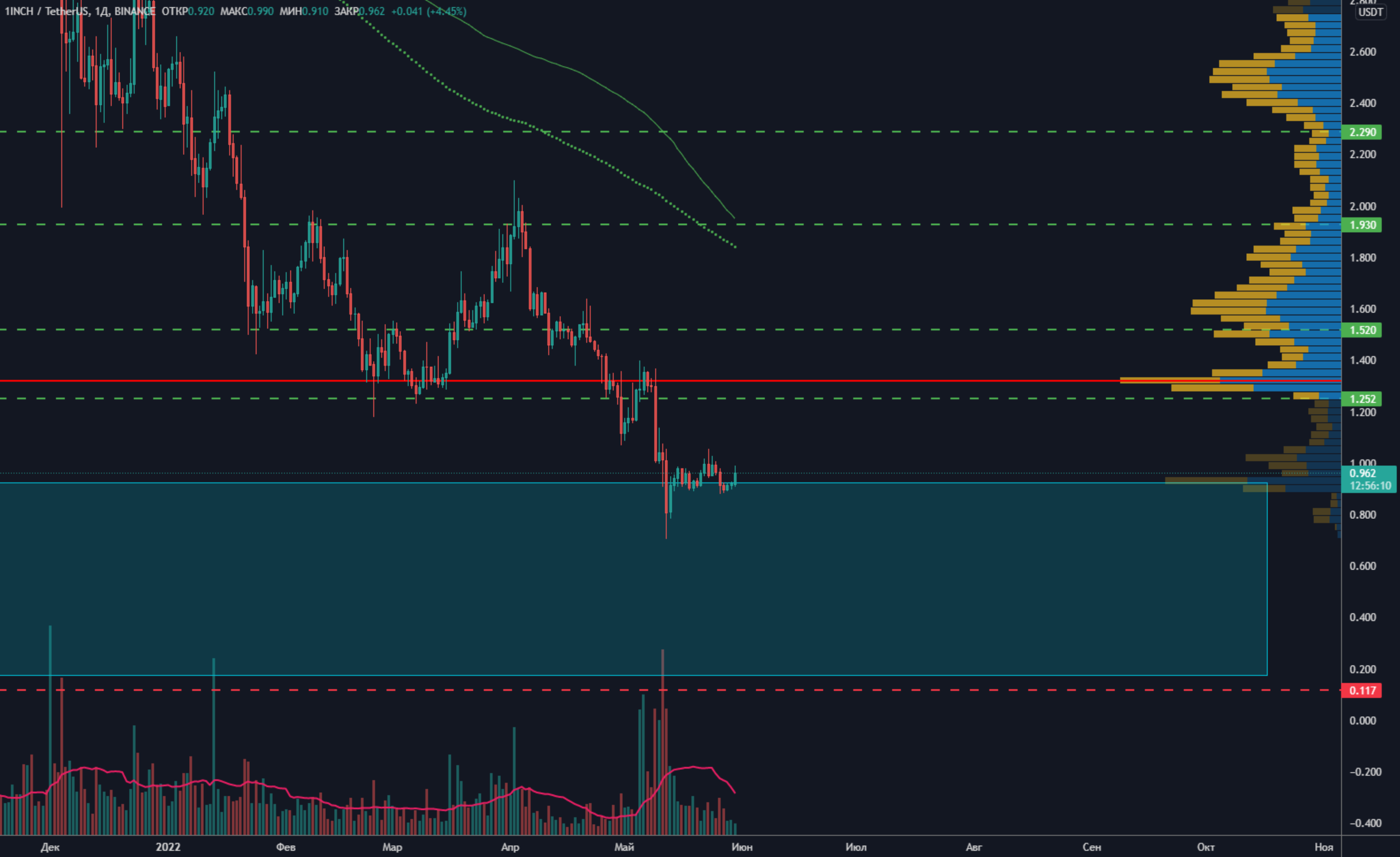 График 1D, Binance. Еще один перспективный актив с большим потенциалом роста. Cтавим сетку из 5 ордеров.